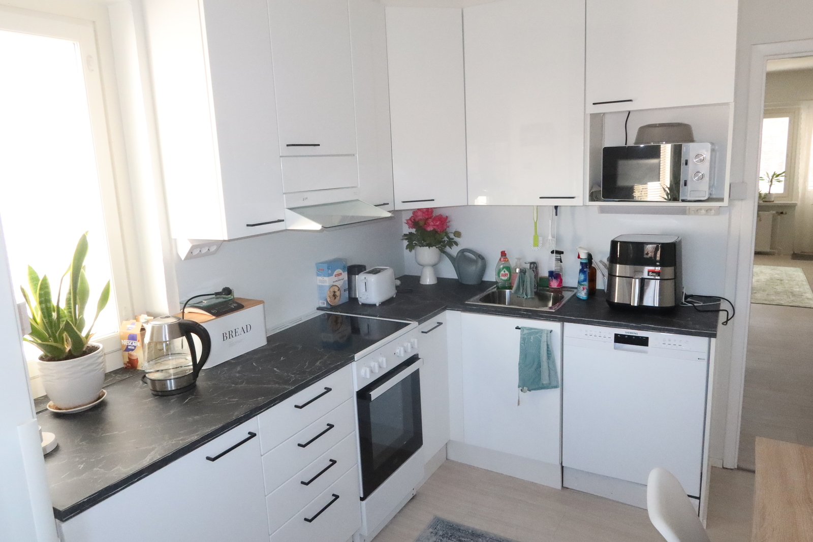 Lasitettu länsiparveke. Astianpesukone. Pesukone. Energialuokka D2018. Luottotiedot tarkistetaan.